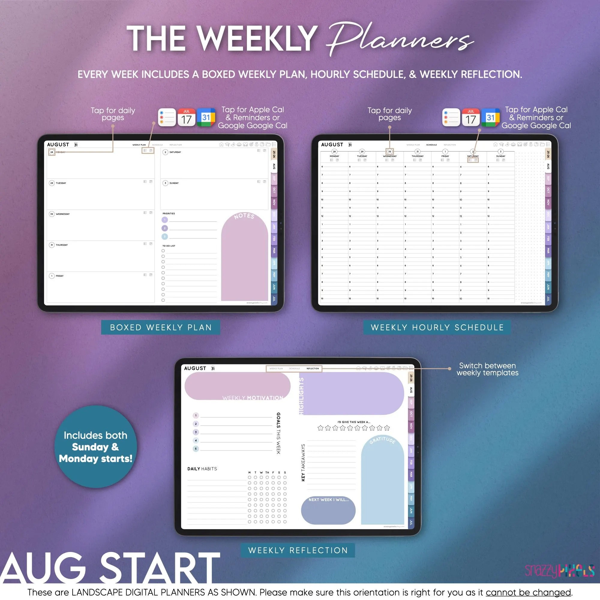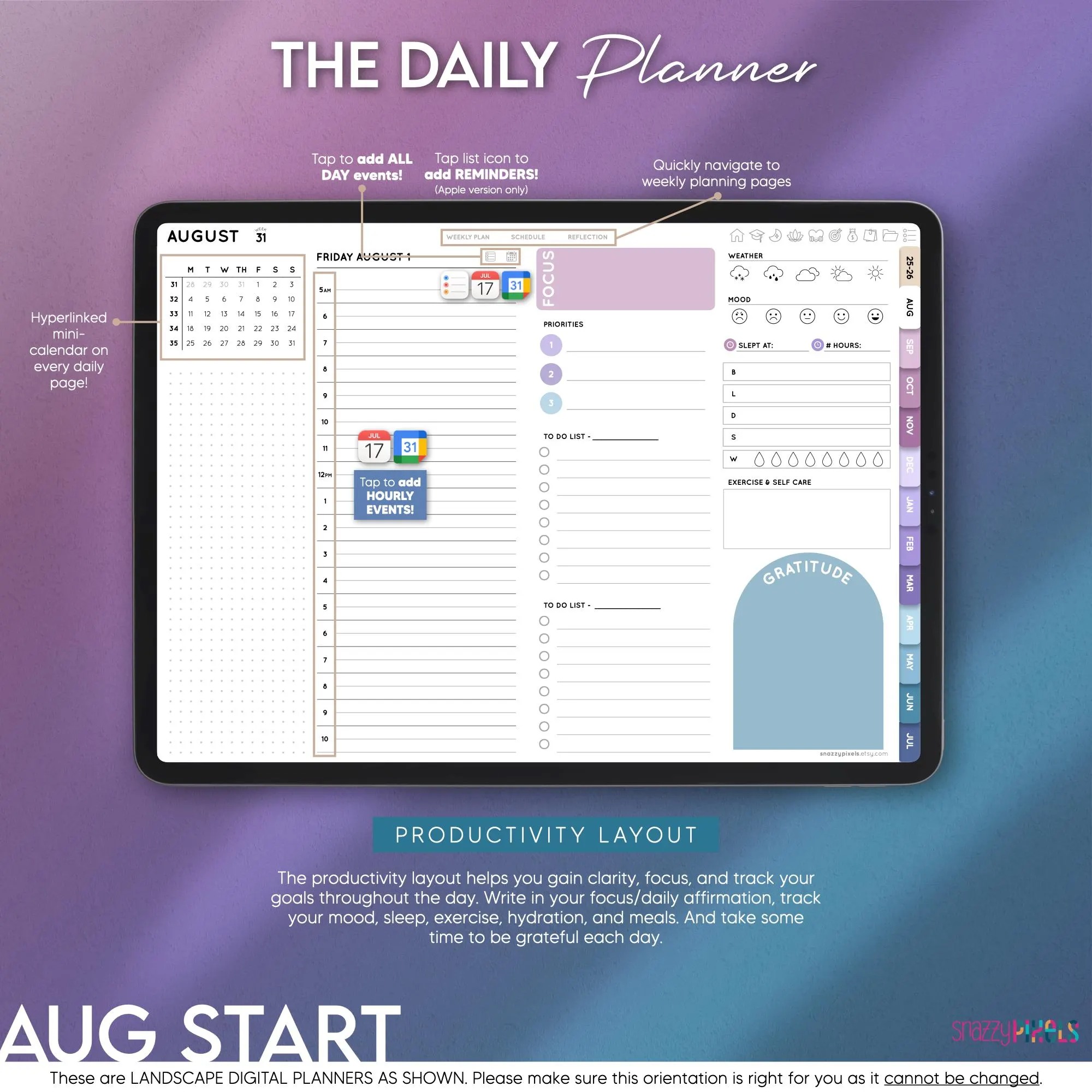 THIS IS A LANDSCAPE DIGITAL PLANNER AS SHOWN. Please make sure you this is the correct orientation for you as this CANNOT BE CHANGED.
