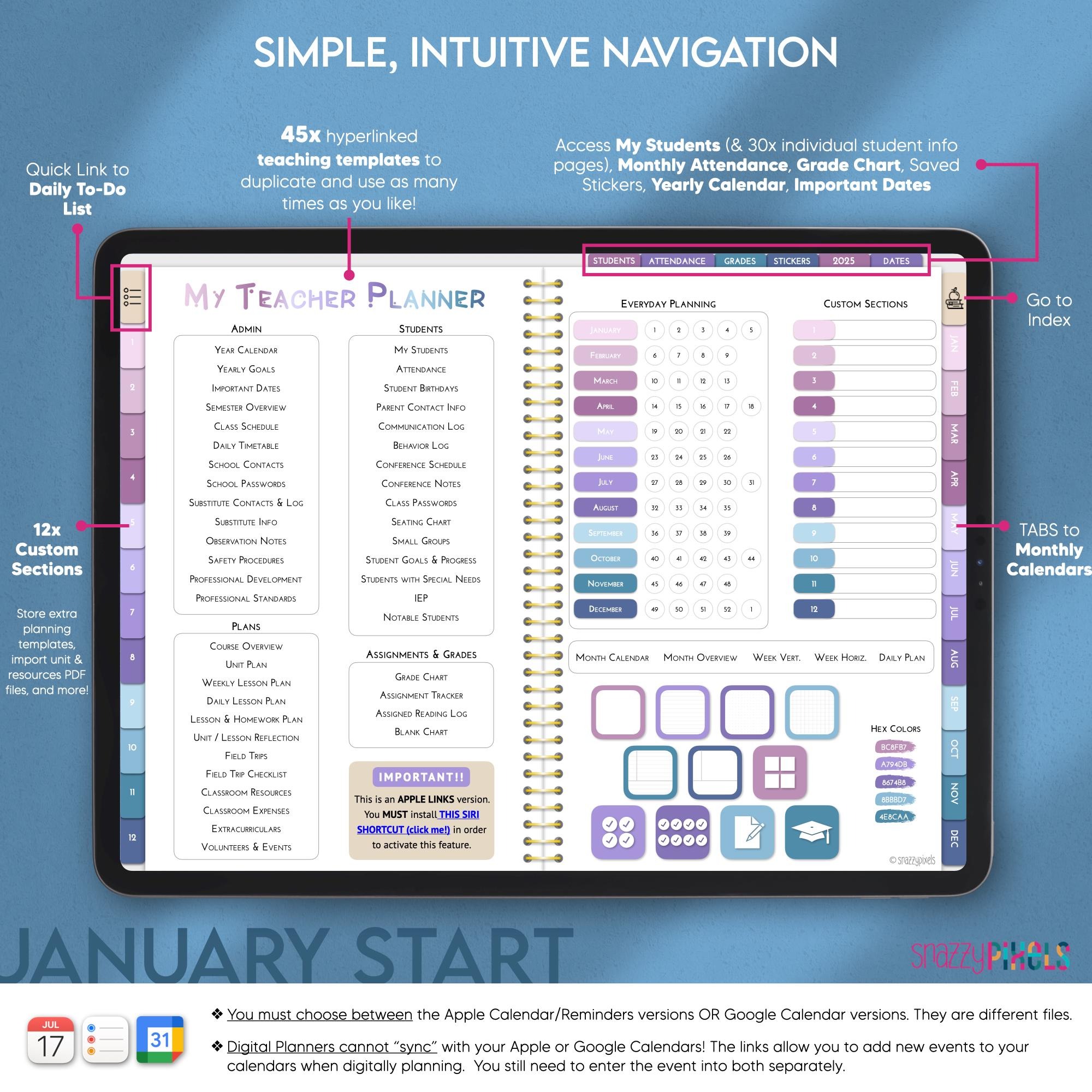 Digital Teacher Planner 2025 UNDATED & DATED Lesson Planner, Academic Planner, for Goodnotes
