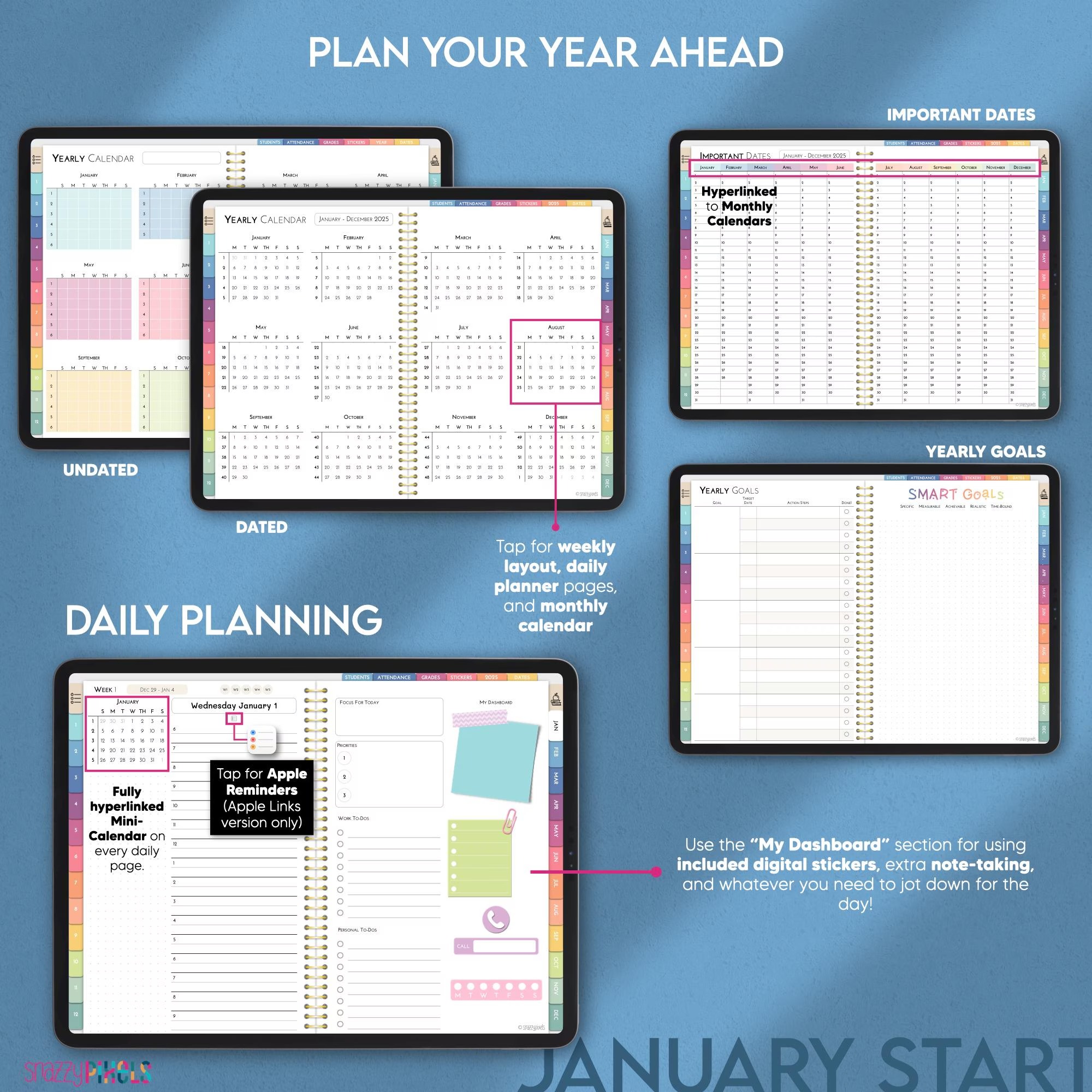 THOUSANDS of hyperlinks throughout the planner for easy and seamless navigation to each and every section and page in your planner!