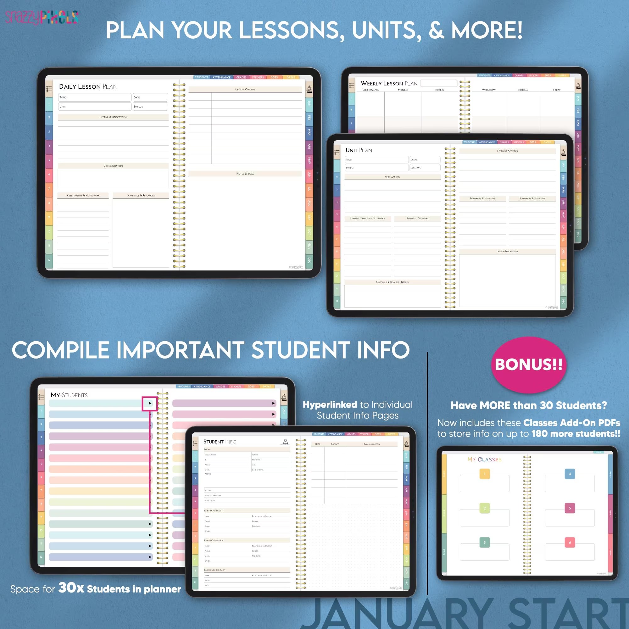 Includes Dated 2025 (January-December) Teacher Planners